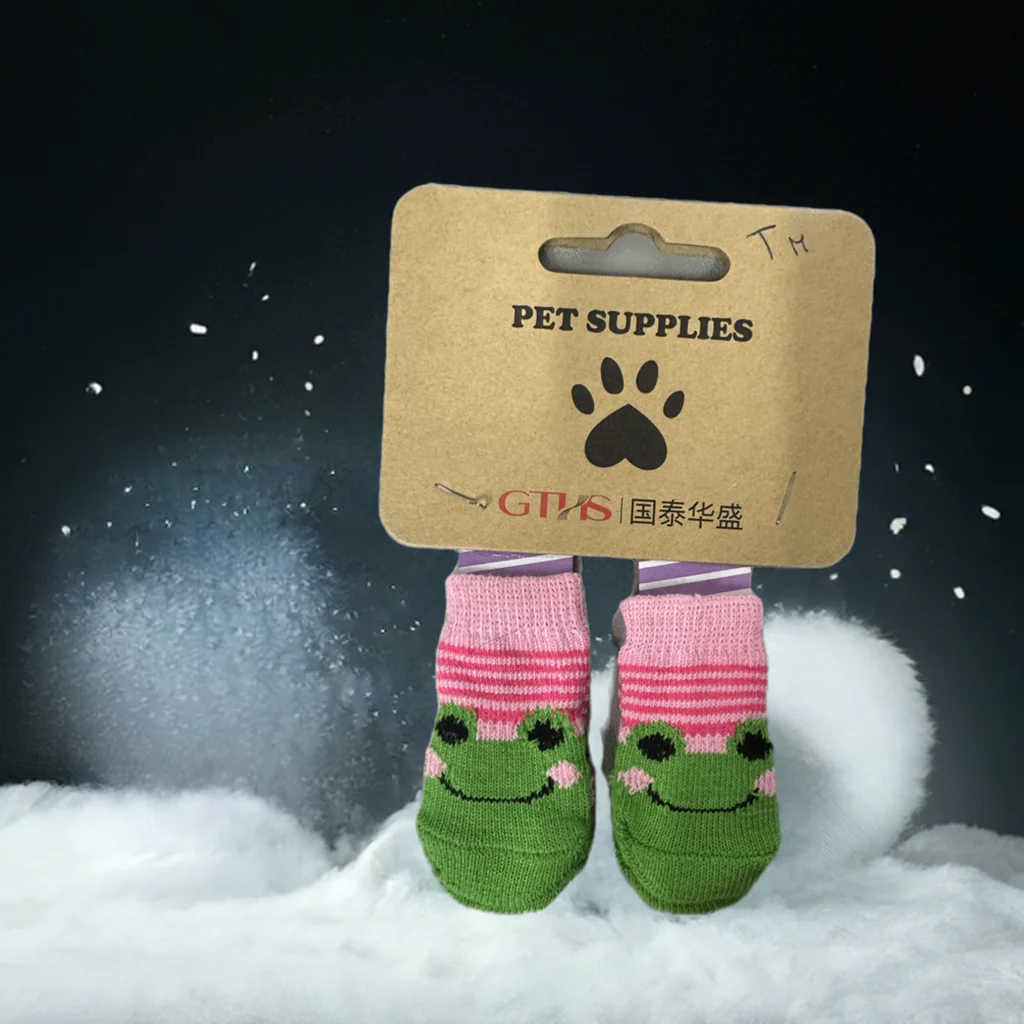 Rendi ogni passo del tuo amico peloso sicuro e divertente con questi adorabili calzini antiscivolo! Decorati con un dolce volto di rana e realizzati con materiali morbidi e confortevoli, questi calzini offrono protezione per le zampe, evitando scivolate su superfici lisce. Ideali per tenere le zampe calde in inverno e perfetti per interni. Un accessorio indispensabile per il comfort e la sicurezza del tuo animale domestico!