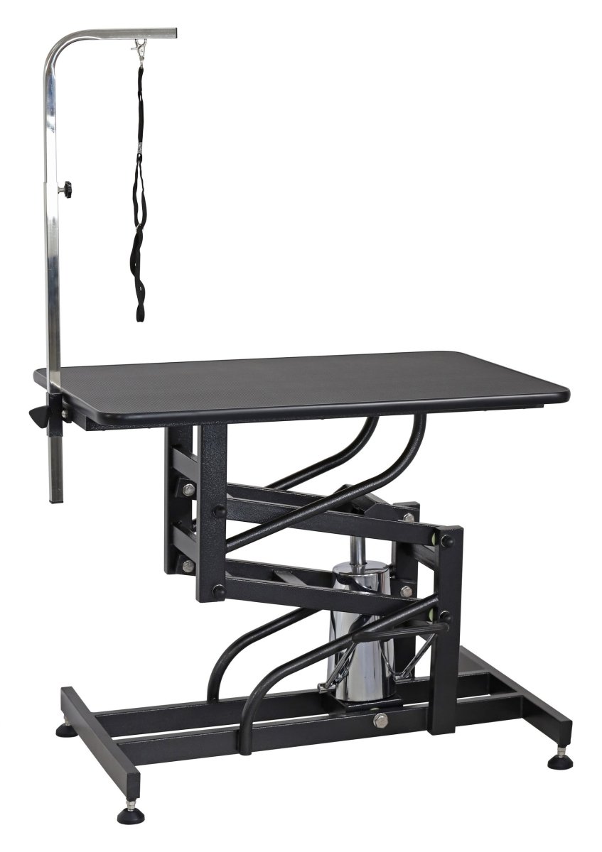 Fantastico tavolo ad alzata idraulica di notevoli dimensioni (120cm X 60cm x 52-100cm) per poter essere usato anche con cani di grossa taglia. il sistema idraulico permette l’utilizzo anche in aree prive di corrente elettrica o nelle quali non può essere utilizzata. Il tavolo viene completato con il braccio di fermo (cod GA1901.01)