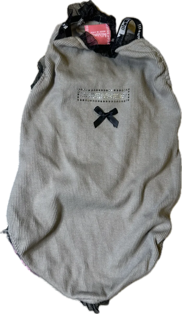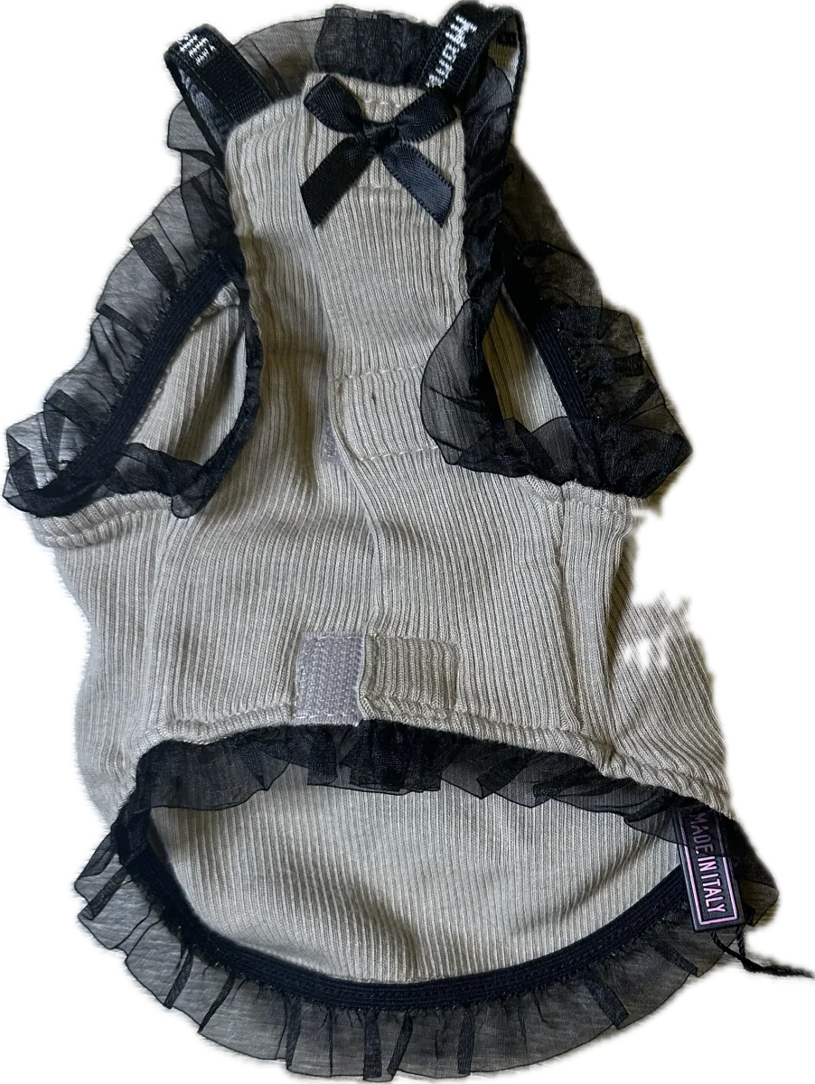 Fai sentire la tua cucciola una vera principessa con questo splendido abitino in velluto! Decorato con un grazioso fiocco e luminosi dettagli di strass, questo capo unisce eleganza e comfort. Le rouches in tulle nero aggiungono un tocco di classe, perfetto per le occasioni speciali o per un look chic quotidiano. Realizzato con materiali di alta qualitร , รจ morbido e delicato sulla pelle del tuo amico a quattro zampe. Disponibile in due taglie:
