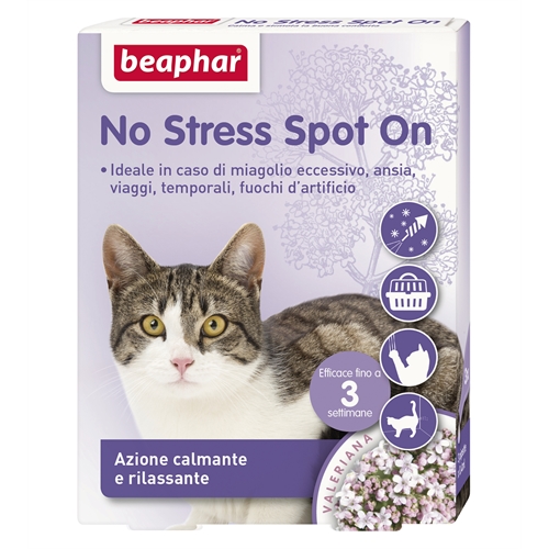 Beaphar No Stress Spot On Gatto: soluzione naturale per ridurre lo stress e l’ansia nel tuo gatto. Facile da usare, efficace in un’ora. Confezione da 3 pipette.