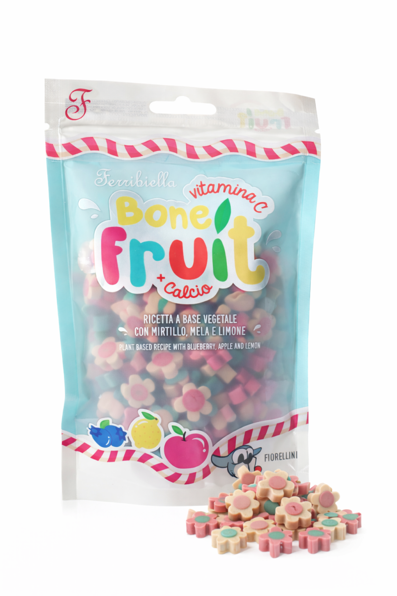 Bone Fruit Fiorellini 120g è consigliato per chi desidera integrare la dieta del proprio animale con un prodotto specifico che unisce praticità e una forma studiata per un consumo semplice e piacevole.