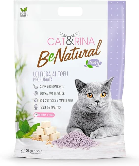 Cat e Rina Lettiera alla Lavanda Ecologica Vegetale Tofu Agglomerante per Gatti Cat&Rina 5,5 L