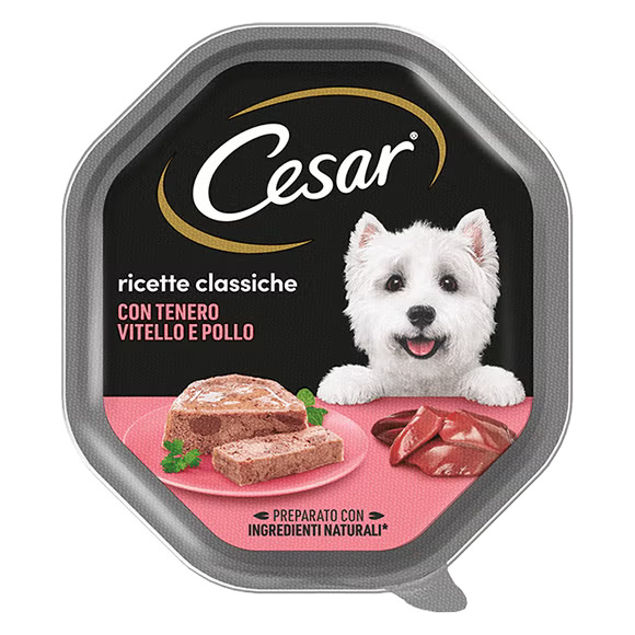 Cesar Ricette Classiche: deliziosi pasti umidi per cani di piccola taglia, preparati con ingredienti di alta qualità e senza additivi artificiali. Disponibile in diverse gustose varianti.
