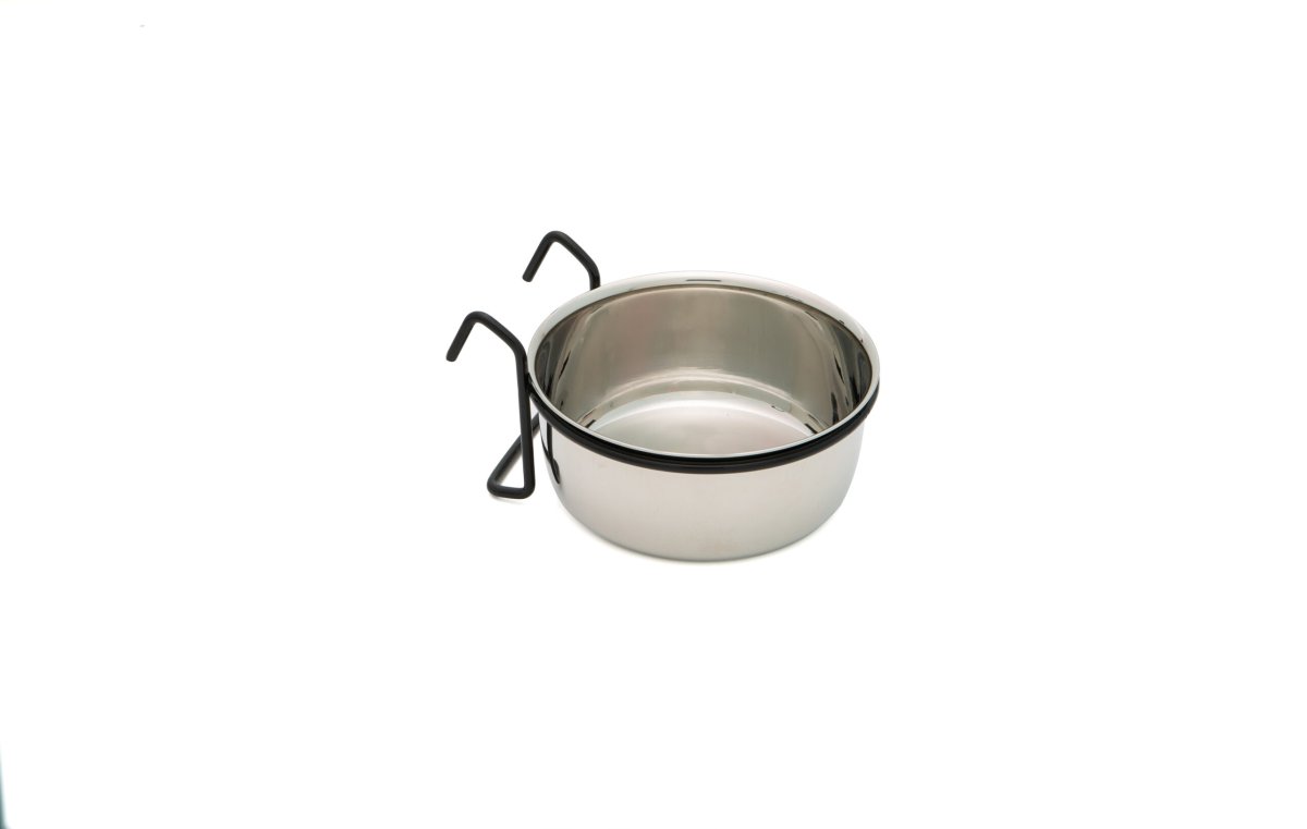 Ciotola in acciaio inossidabile da 600ml con ganci, ideale per gabbie di uccelli e voliere. Facile da pulire e resistente.