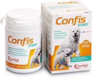 Confis Start di Candioli: mangime complementare per il supporto articolare del cane. Con Glucosamina e Condroitina. Confezione da 20 compresse.
