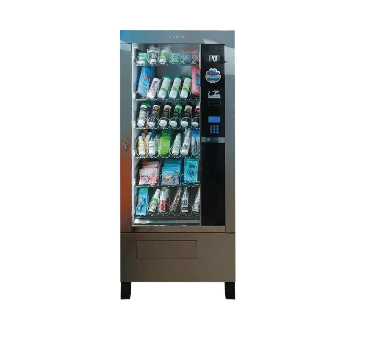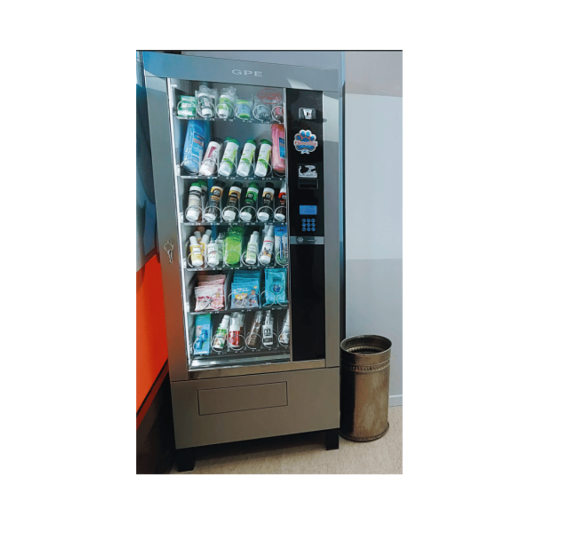 Distributore automatico di prodotti self service: Funzionante con la stessa tessera in uso per la macchina di lavaggio, con contanti e/o con carta di credito. • La tessera viene direttamente caricata nel distributore utilizzando contanti o tramite il lettore di carte di credito. Questo evita l’acquisto della cassa carica tessere (cod PSD2502.01). • La configurazione standard è composta da 5 cassetti con 27 selezioni per un totale di massimo di 150 confezioni (dipende dalla dimensione dei prodotti inseriti). Il distributore include il frigo per i prodotti che necessitano di questa opzione. • Dimensioni: 72x85x180 cm ALTRI MODELLI DISPONIBILI A RICHIESTA