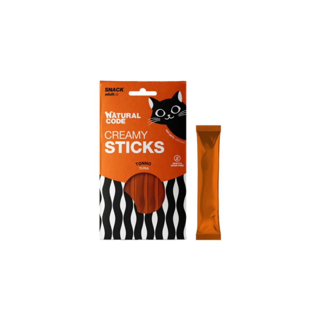 Natural Code Gatto Creamy Stiks sono deliziosi snack cremosi senza cereali, pensati per offrire al gatto adulto un momento di piacere sano e naturale. La consistenza morbida e vellutata li rende ideali come premio quotidiano, come topping sul cibo secco o per facilitare lโassunzione di integratori e farmaci.