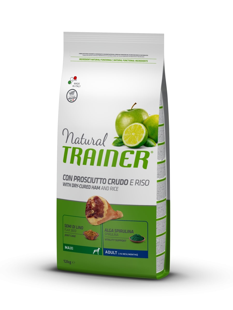 La formula di Natural Trainer Maxi Adult Prosciutto Crudo include: