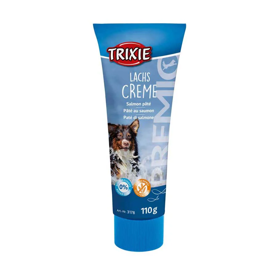 Lo snack Premio Paté al salmone per cane è ideale per ricompensare il vostro animale o aiutarlo ad assumere le sue medicine. Confezionato in un tubetto, potete utilizzare il proteggi tubetto Trixie per somministrare più facilmente il prodotto e conservarlo al meglio.