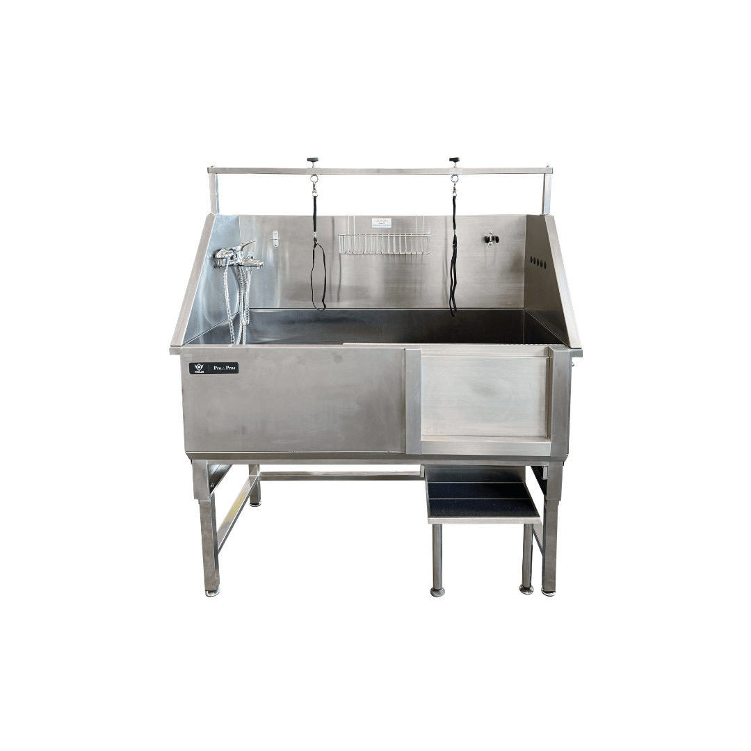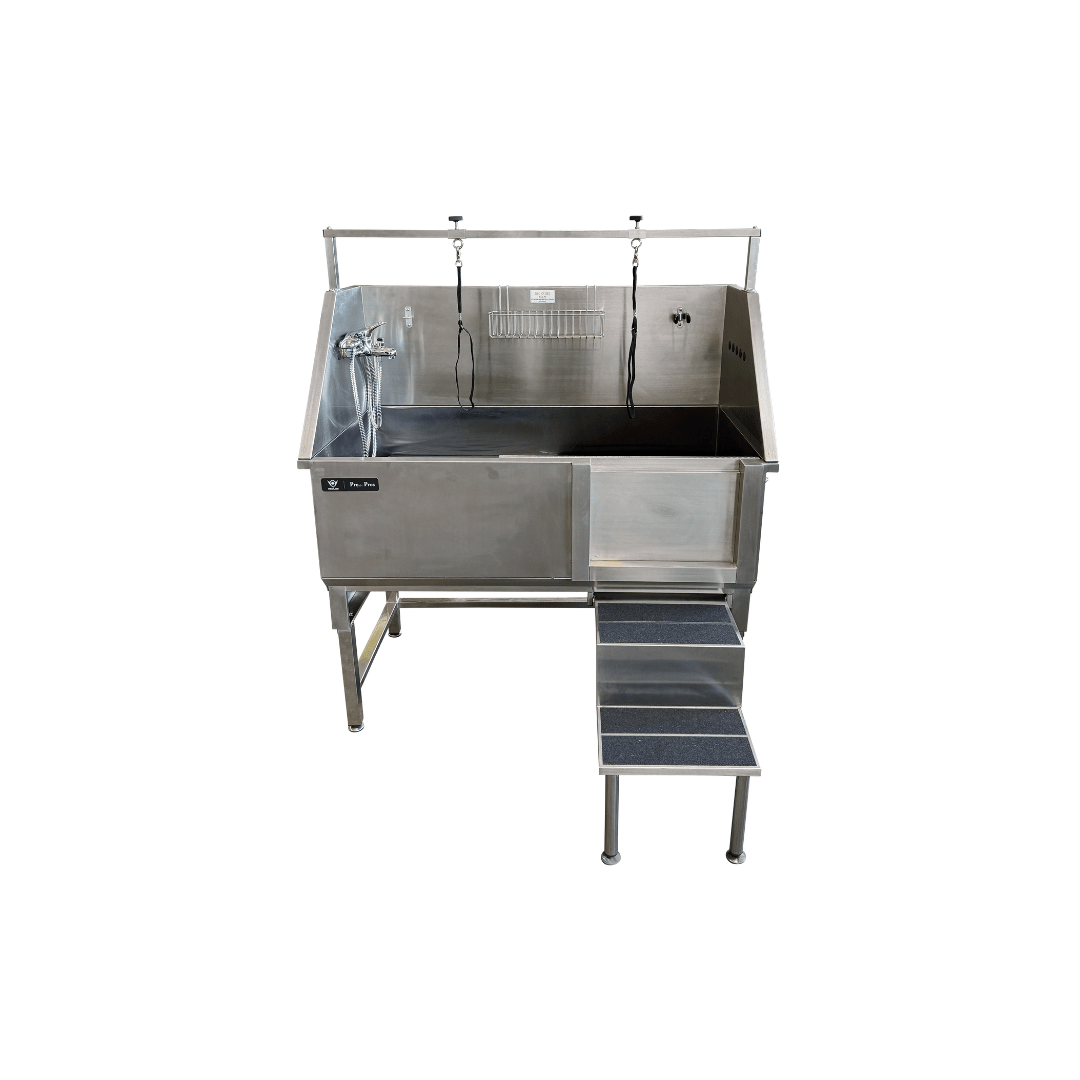 Vasca fissa costruita in acciao inox 304 spessore 1.2 mm. La porta scorrevole è disegnata per garantire una perfetta tenuta e le tre pareti ribaltabili contengono gli spruzzi che si creano durante il lavaggio. La vasca viene fornita con miscelatore, doccetta, rialzo per cani di piccole dimensioni, ganci e lacci in nylon per fissare il cane e tubazione di scarico. Sul fondo della vasca sono presenti 2 rialzi grazie ai quali il cane/gatto, durante il lavaggio non ha le zampe immerse nell’acque e semplifica il risciacquo. Nel rispetto della normativa vigente nello scarico è presente un filtro a secchiello che…