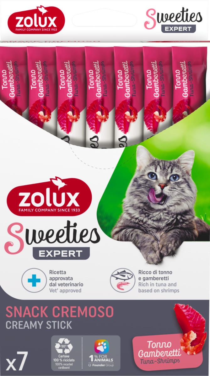 Non aspettare, regala al tuo gatto un momento di puro piacere con Zolux Sweeties Cat Tonno e Gamberetti!
