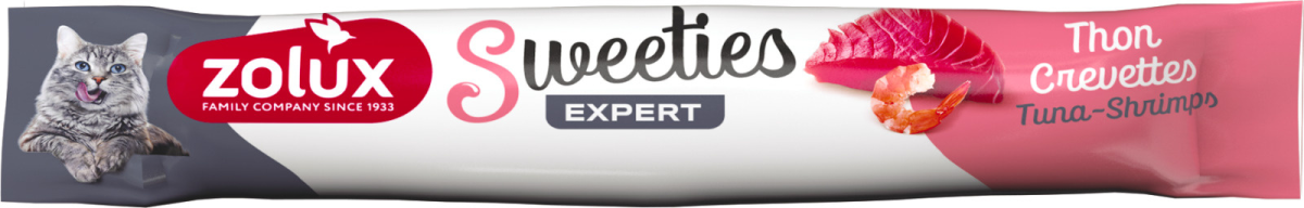 Snack per gatti Zolux Sweeties Cat al gusto di tonno e gamberetti. Ideali come premio o coccola per il tuo felino.