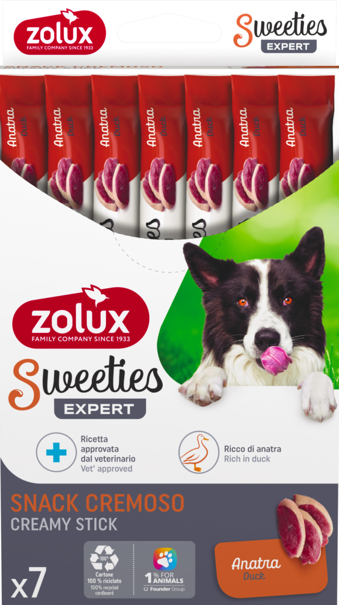 Snack per cani Zolux Sweeties al gusto anatra, 7x14g. Ideali come ricompensa.
